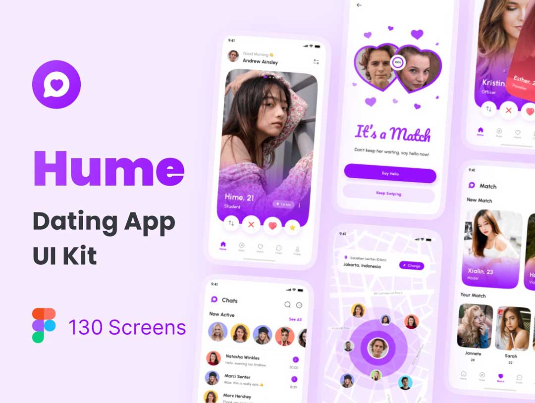 Hume约会交友app用户界面设计素材(Hume – Dating App UI Kit),Hume是一个优质和高质量的UI套件,具有约会,社交媒体,聊天,爱情和见面应用程序的所有全部功能。 Hume具有独特的风格和利基,您可以使用设计组件轻松编辑和自定义所有元素,从而加快项目的设计过程。一切都与设计系统集成在一起,因此您只需要在设计系统中更改颜色,徽标,文本等,然后整个设计屏幕将自动更改。