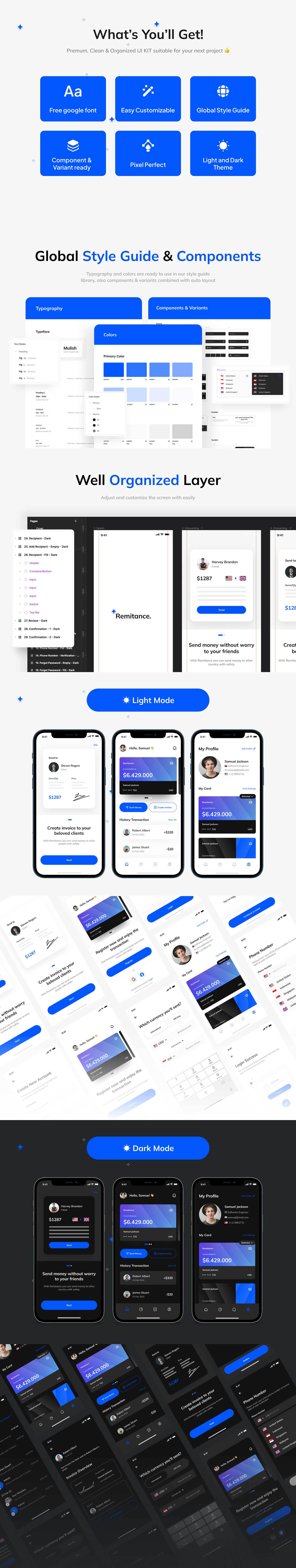 Remittance-金融支付、汇款应用程序UI设计套件(Remittance App UI Kit),Remittance App UI Kit 是一款 90+ 干净现代的高品质 UI 套件,用于转账和跟踪您的资金。Remittance App 适合您的客户或您自己的个人项目,因为它为您提供了一个可重用的 UI,可以帮助您顺利开发。