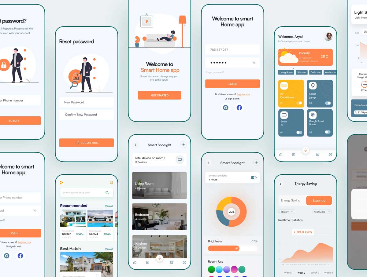 Smart Home成套智能家居app ui设计 .fig .xd .sketch素材