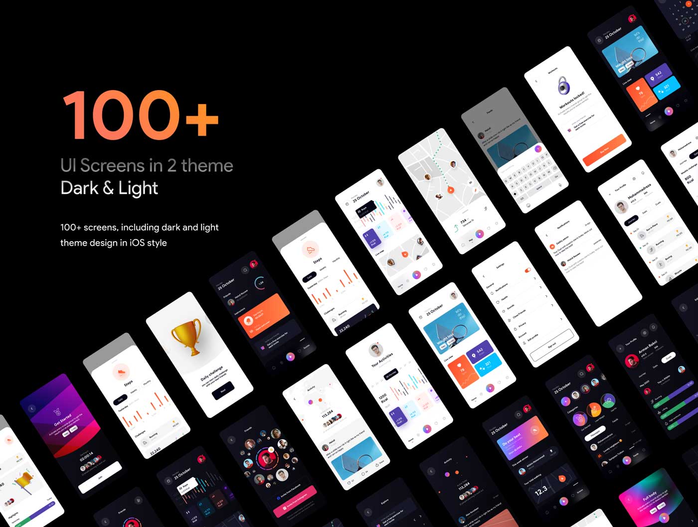 appAPP UI暗黑风格XD素材ui设计组件sketch素材深色主题Figma素材uikit成套素材fig素材卡片式UI KitUI套件APP界面