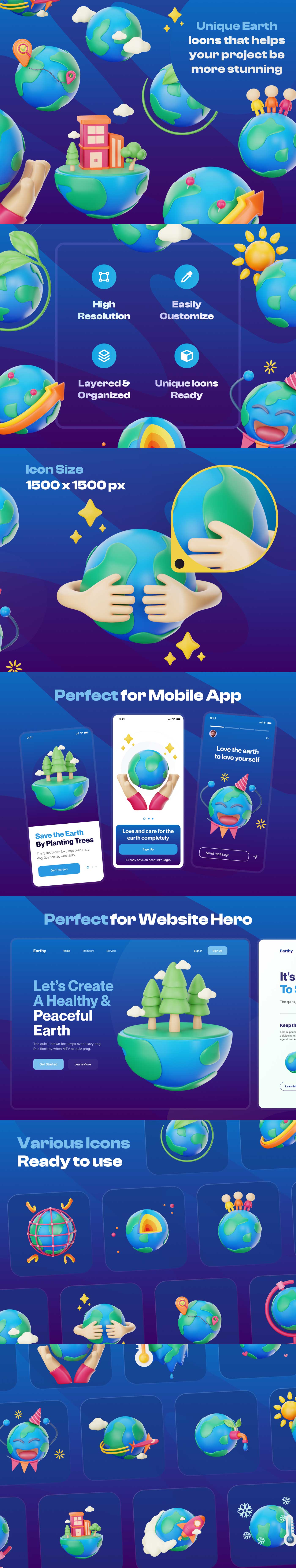 Earthy-生态与地球3D图标设计素材