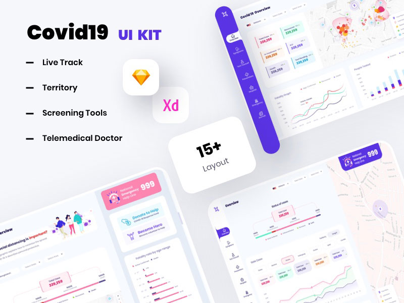 新冠肺炎数据平台dashboard模板 .xd .sketch素材